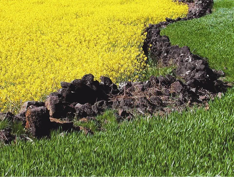 새하얀 감귤꽃밭과 메밀꽃밭과 마늘밭과 점점 황금빛으로 물들어가는 청보리밭과