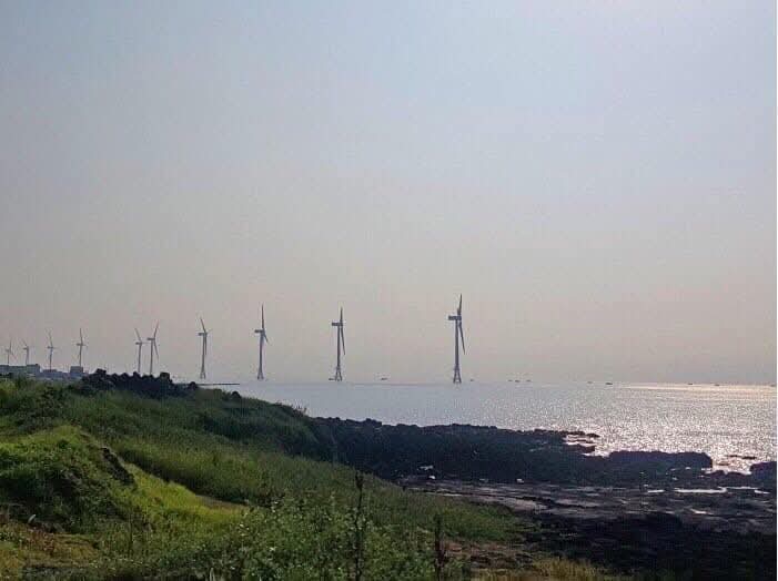한라산길 진분홍철쭉길에 살랑살랑 불어오는 시원한 바닷바람은 해안도로의 거대한 풍차들을 멋스럽게 돌린다.