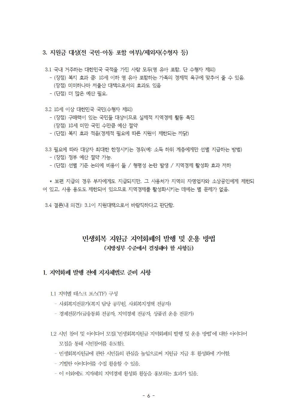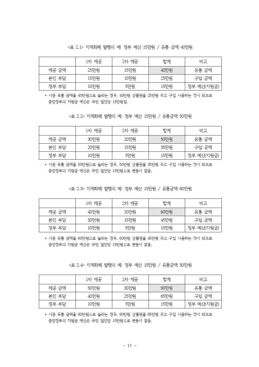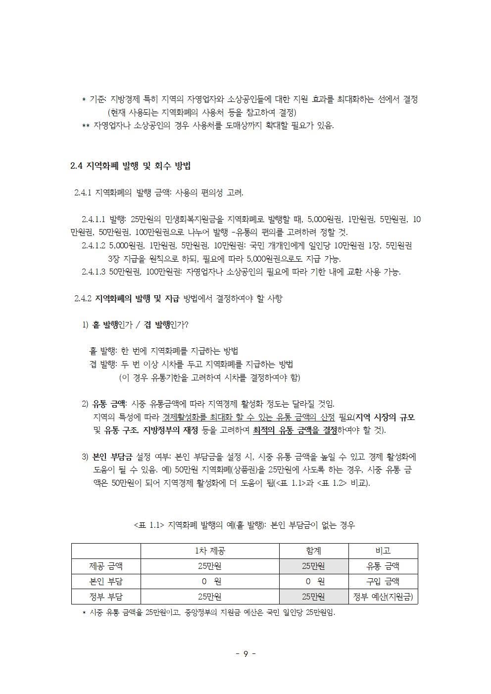 정부 부채 증가 문제에 대한 해결 방안으로서 다음과 같은 것들을 제안하고 있습니다. 예컨대, 지역화폐 발행 방법 (중앙과 지방 그리고 시민의 참여-본인부담금) 및 지역화폐의 용도 제한(사용처 및 사용 품목 제한), 정책 시행 시 중앙정부와 지방정부에서 해야 할 일 등입니다.