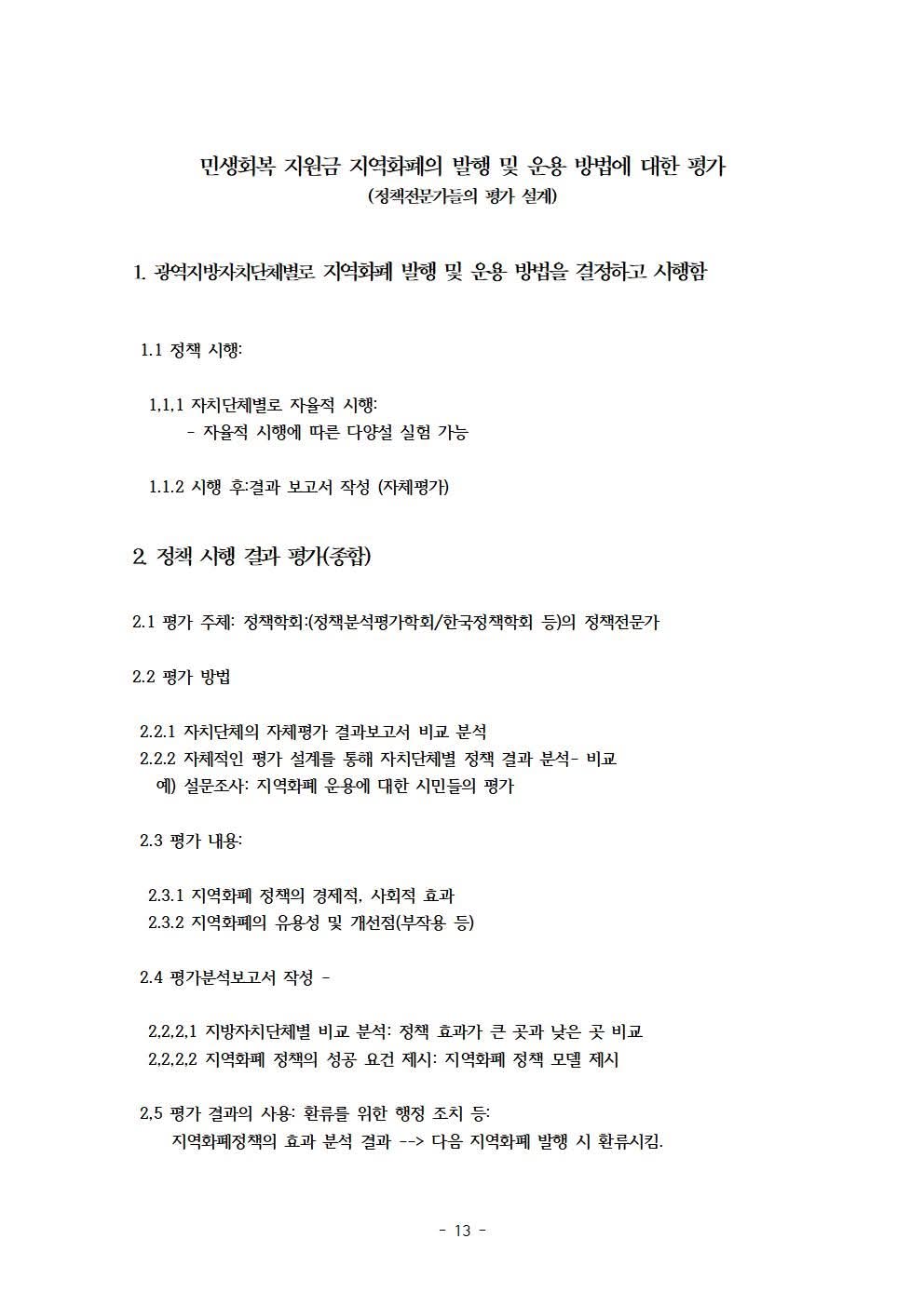 다음은 지역화폐(민생회복지원금) 정책의 구체적 실행 방안입니다. 민주당과 국민의 힘 정책 담당자들에게 작년 9월 이메일로 보냈는데, 별로 반영되지 않은 듯하여 여기에 올립니다,
