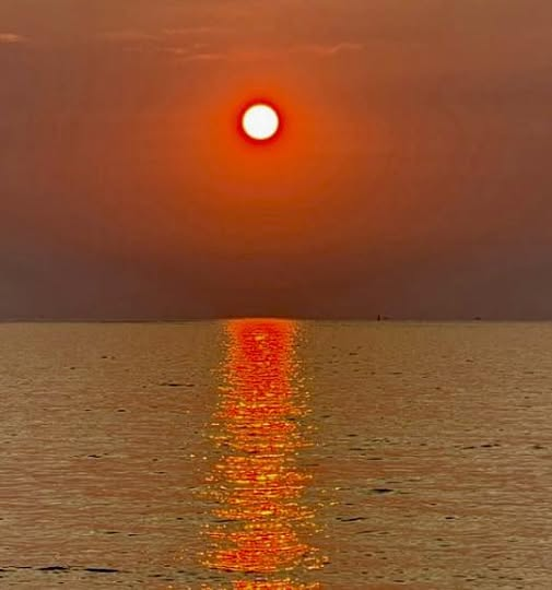 윤슬에 비친 붉게 물든 노을