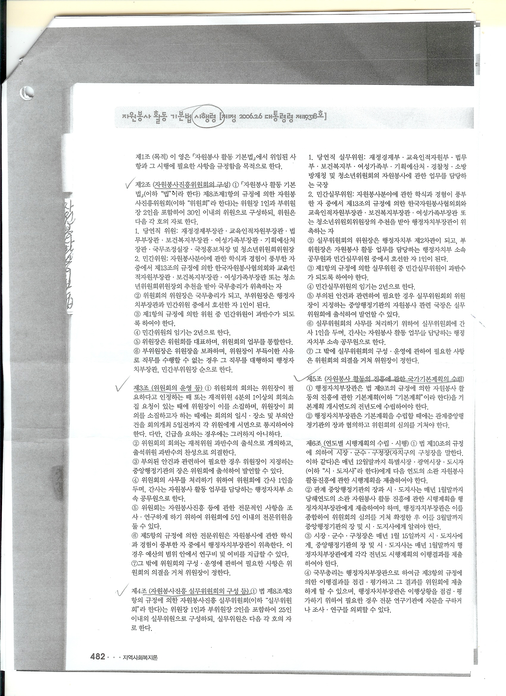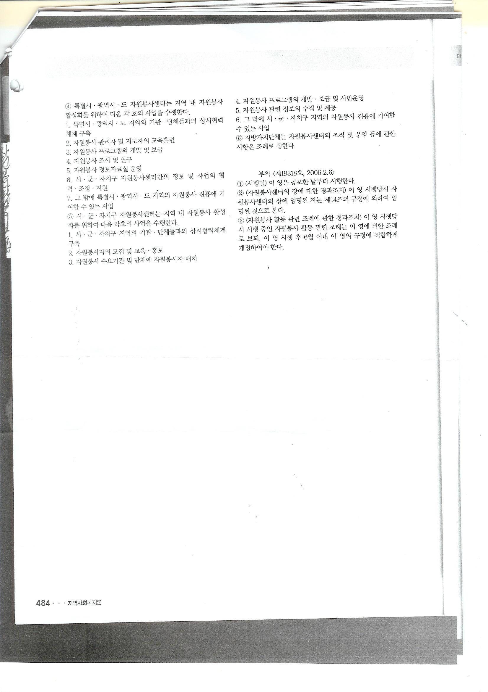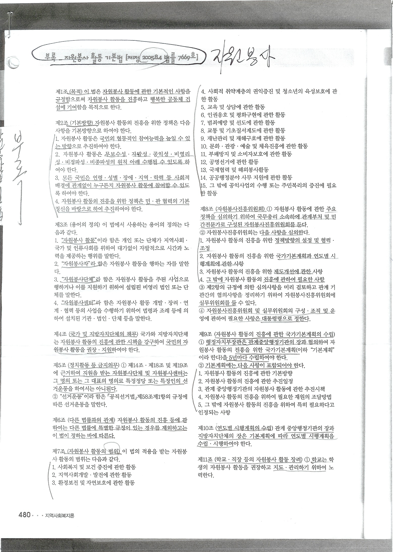 자원봉사활동 기본법 및 시행령