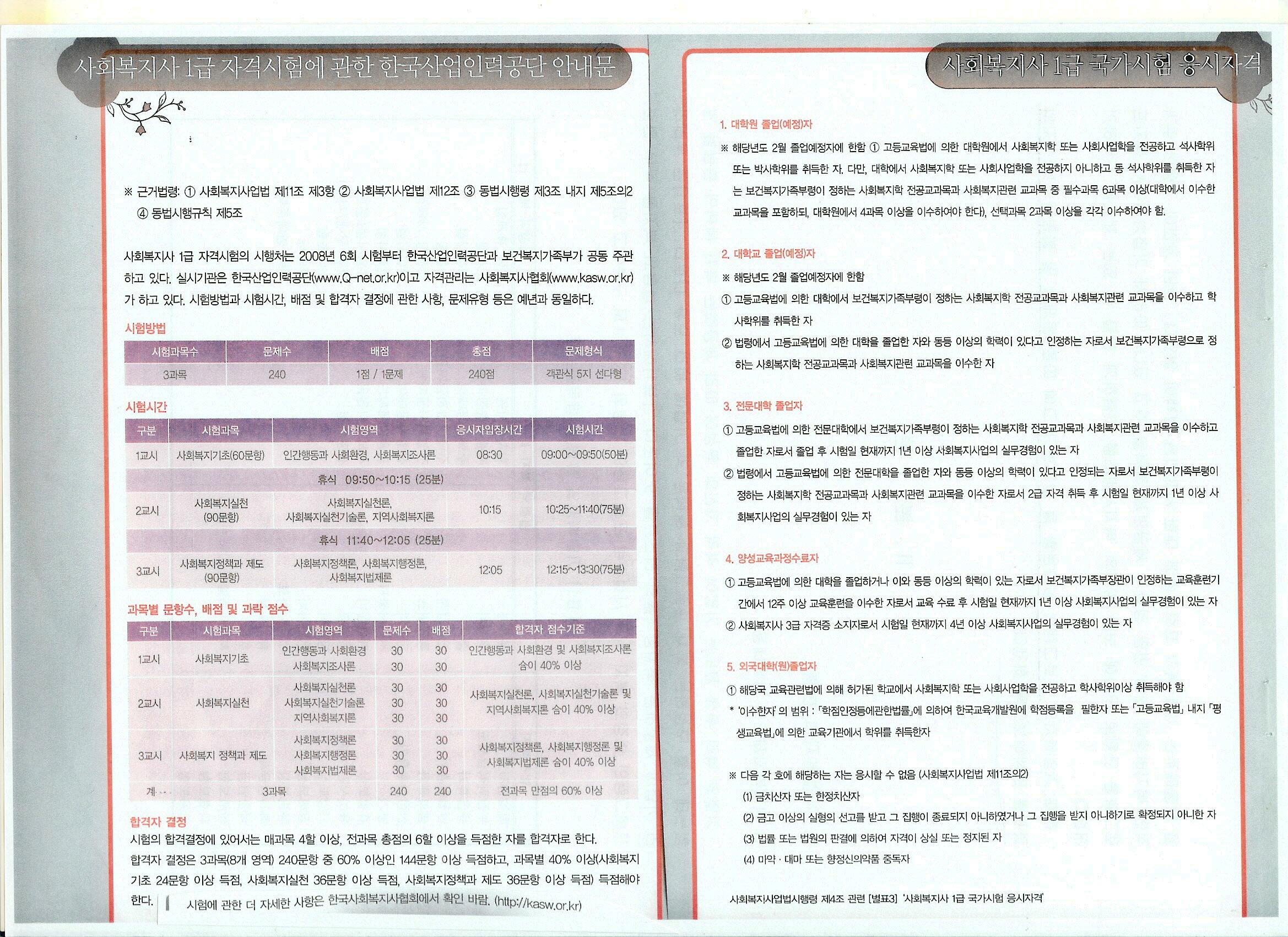 | 사회복지사 1 급자격시험 과목과 응시자격 (0) | 2008.11.11 |