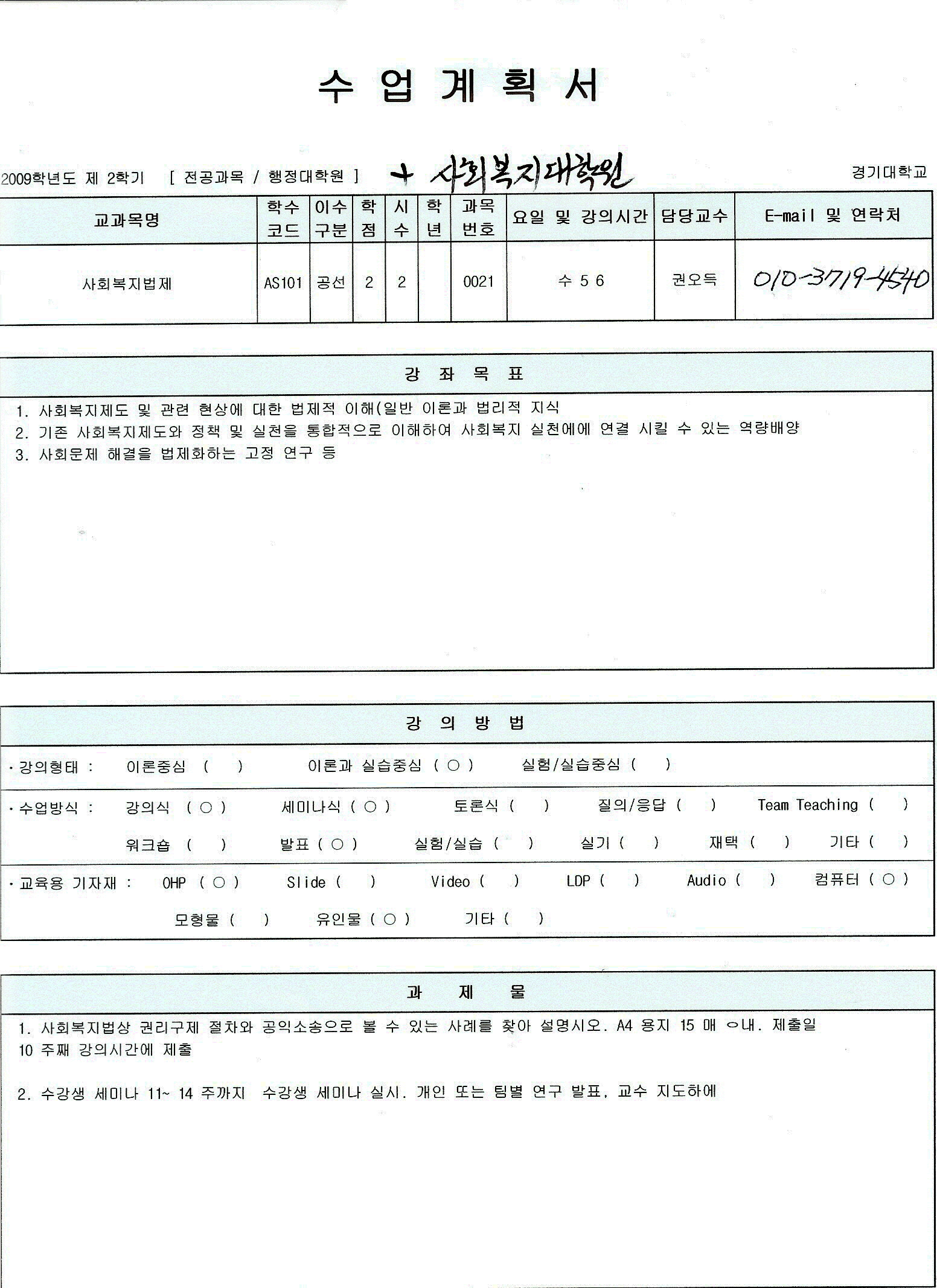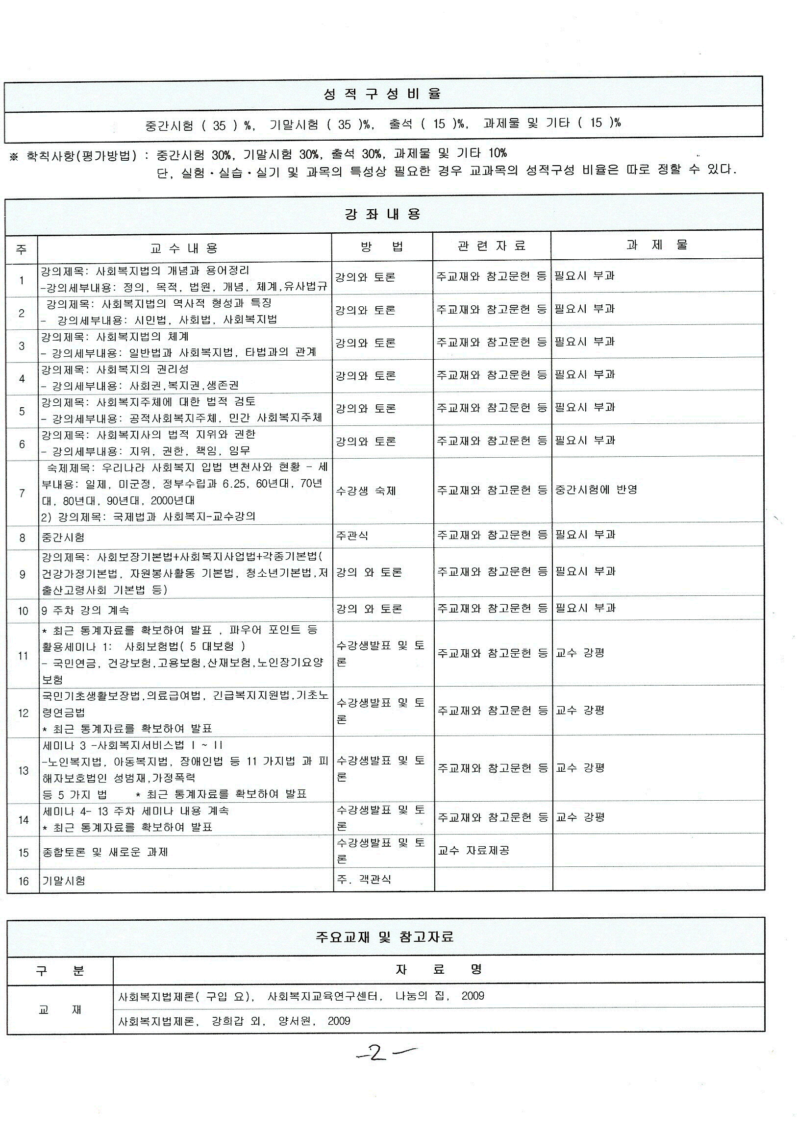 | 2009-2 학기 사회복지법제론수업계획서 ( 평택대) (0) | 2009.08.30 |