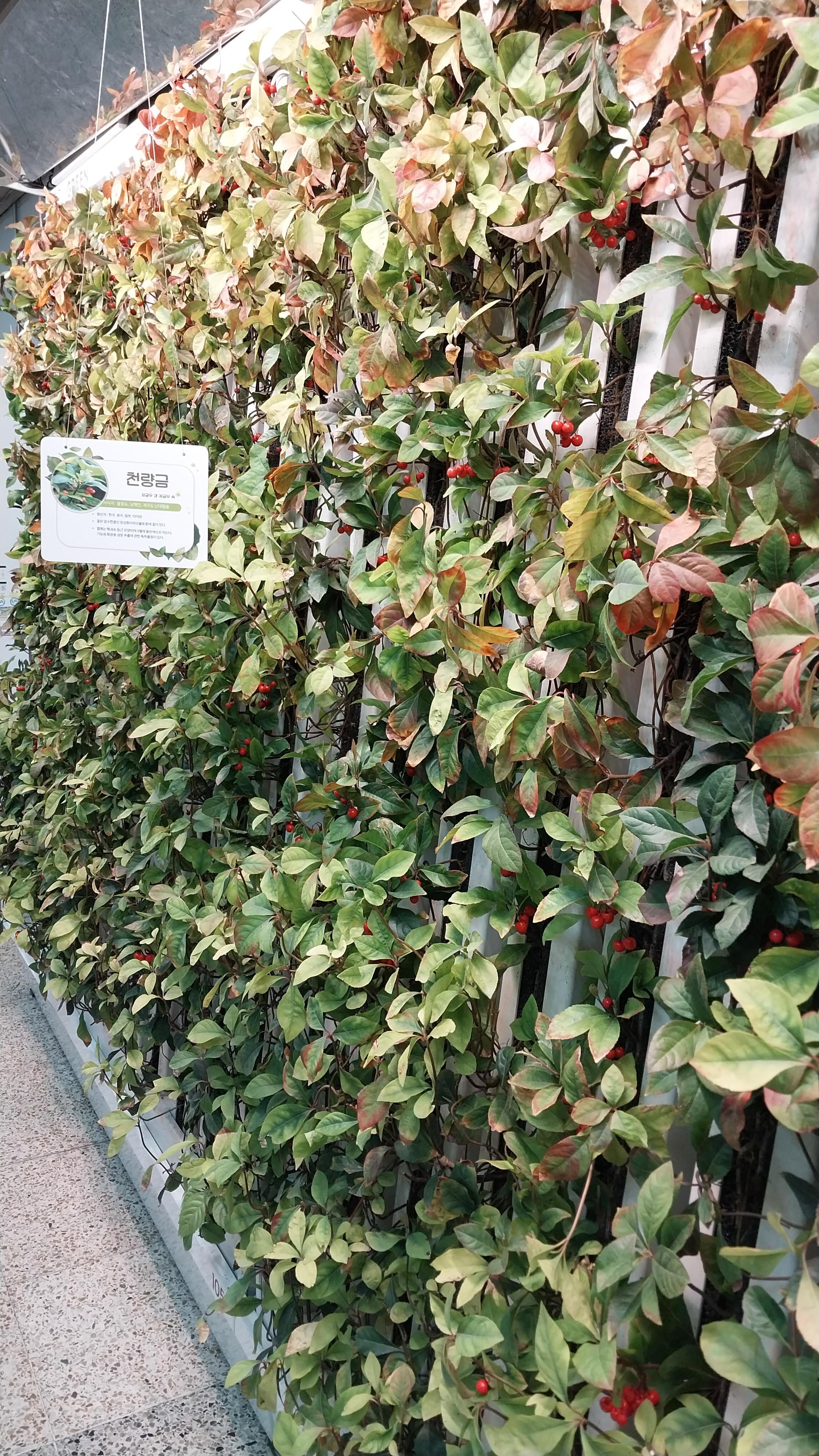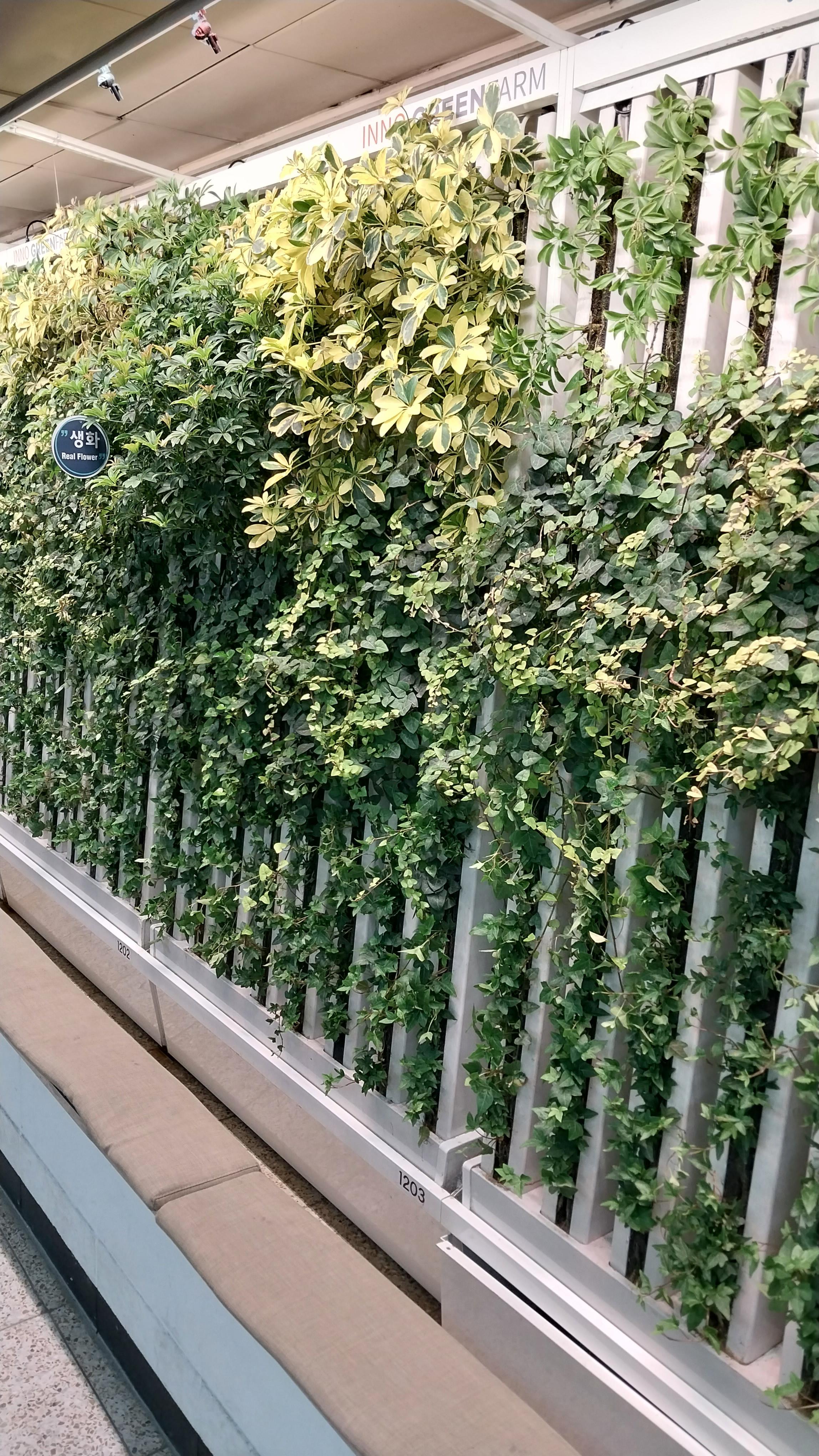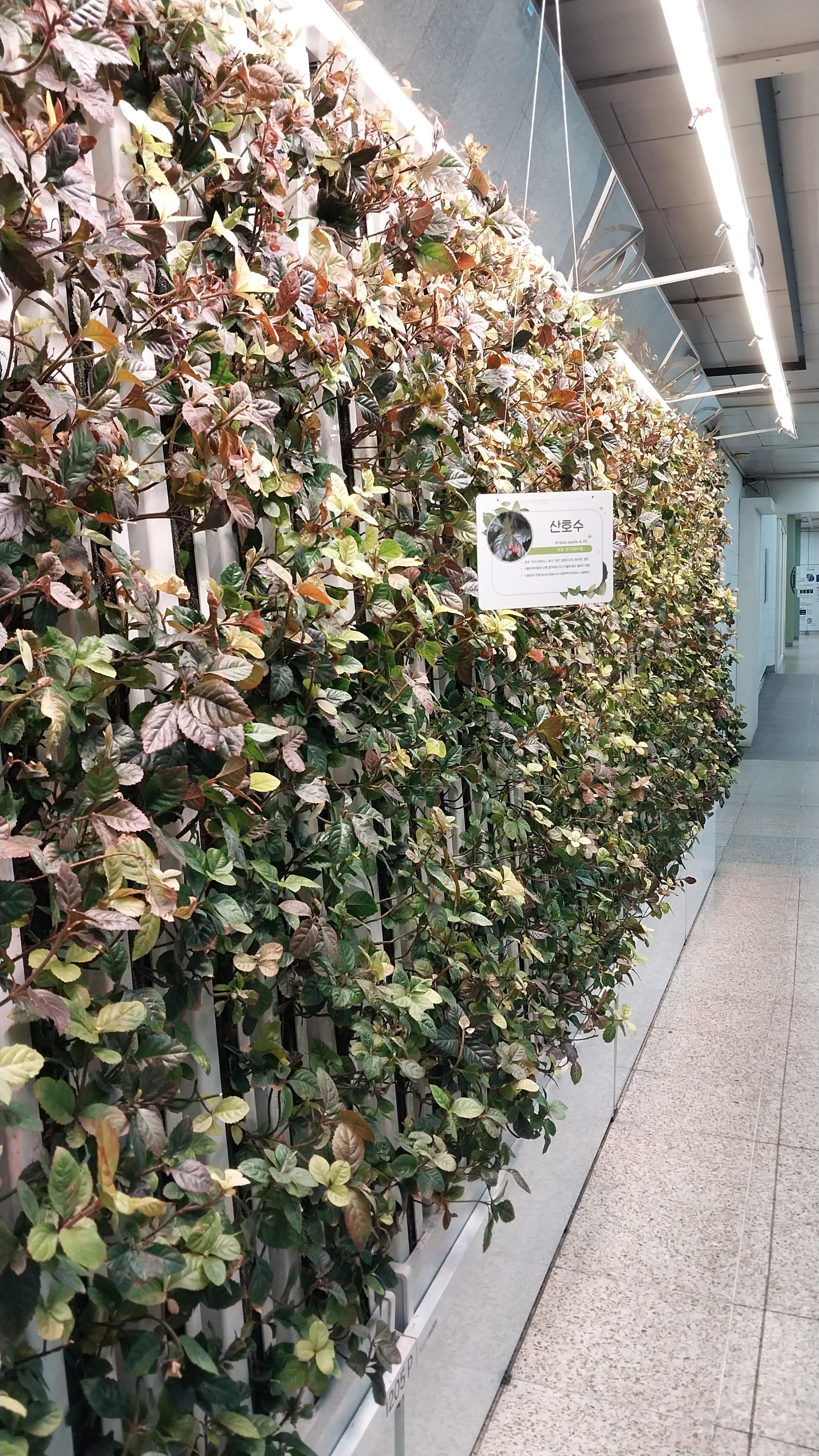 7호서 청담역 출구벽에 생화 단장