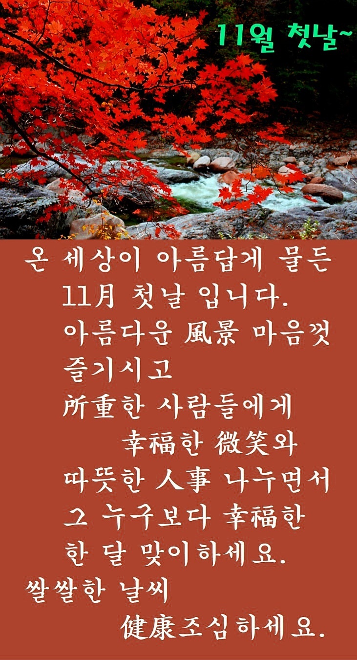 | 꽃 같은 마음으로 아름답게 삽시다! (0) | 2023.11.02 |