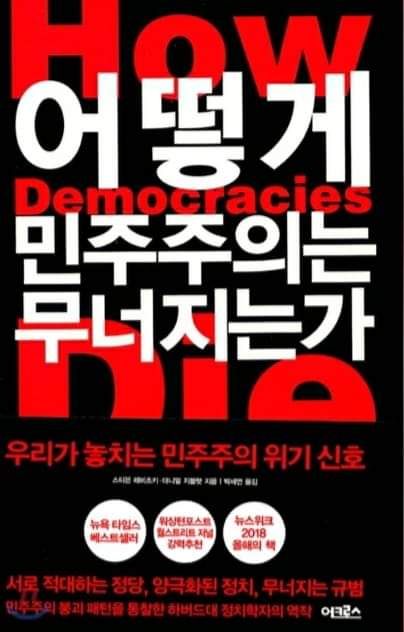 스티븐 레비츠키와 대니얼 지블랫이 함께 쓴 책 <민주주의는 어떻게 무너지는가, 2018년>에서 '법의 지배'가 민주주의의 작동원리라 했다. 그런데 실질적으로 민주주의를 지켜주는 것은 법이 아니라 바로 '민주적 규범'이고, 그 행위 준칙은 <상호 관용>과 <제도적 자제>라 했다. 나는 여기에 <상식>이라는 준칙 하나를 더하면 완전하다 생각한다.